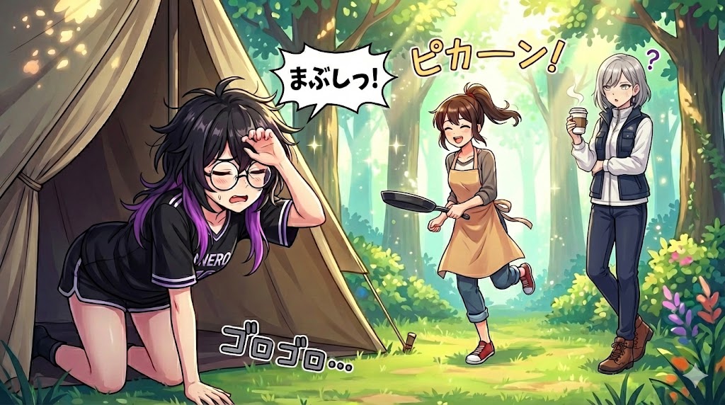 テントの外では虫の声が響いているのに、この液晶画面の前だけが、世界から切り離された真空のよう。