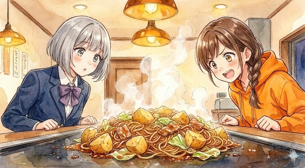 「これが『里』のじゃがいも入り焼きそば! 炭水化物×炭水化物の奇跡のコラボだよぉぉ!」