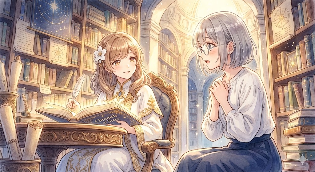 視界を埋め尽くしたのは、眩いばかりの星の光と、懐かしい古書の匂いでした。