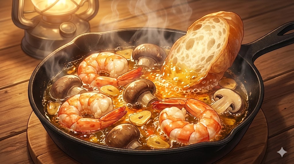 実食:熱々の誘惑「海老と茸のアヒージョ」